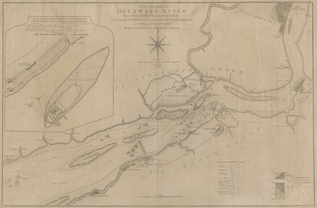 This exhibition will also explore what happened at the Andalusia site during the time of the Revolution. Although Andalusia was not established as an estate until the 1790s, the tract of land was farmed throughout the 1770s and abutted the old King’s Highway along its north border, which was a major thoroughfare for Continental and British troop movements throughout the war, while Andalusia’s southern border, the Delaware River, saw significant naval activity.